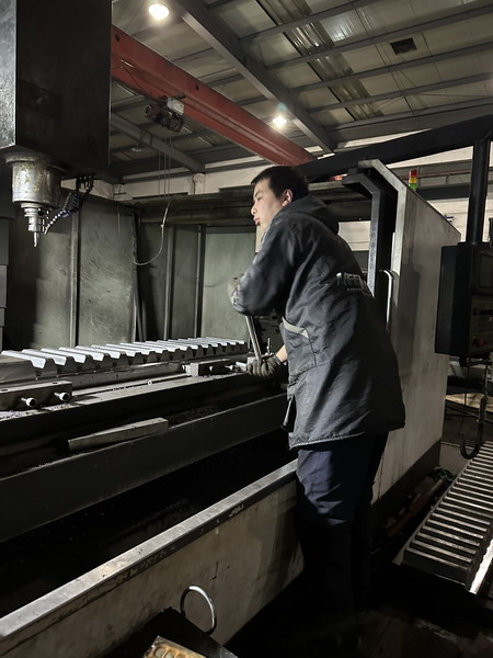 3月30日下午,距離南通云翔機械齒條齒輪車間白班已下班半小時,數控車間主任鄧工還沒有下班,正在與夜班的員工小曹一起裝夾一塊大型導板;同時段,本該下班的老沈師傅雙手各拎一桶水,奔忙在車間。晚上8時,夜班的小顧、小張、小曹各自認真地操作數控銑床上的工件,不停地測量,保質保量地完成各自的齒條齒輪生產任務。此時的老沈還在奮力工作,這批貨比較急,要多加一會班,才能完成下料保證明天的下道工序,保證產品按時交到客戶手中。